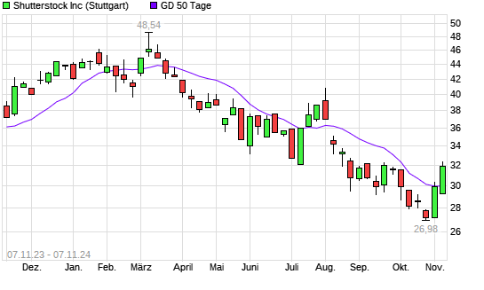 Mit dem Anstieg auf 31,77 EUR hat die Shutterstock-Aktie am 06.11.2024 die 50-Tage-Linie nach oben gekreuzt.