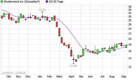 Mit dem Anstieg auf 17,65 EUR hat die Shutterstock-Aktie am 12.09.2025 die 50-Tage-Linie nach oben gekreuzt.