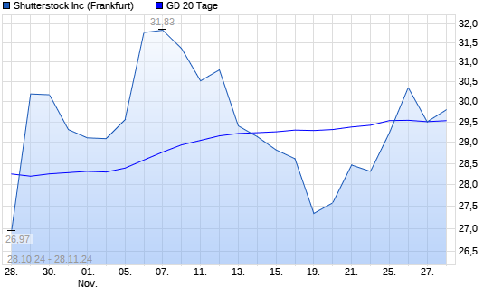 Mit dem Rücksetzer auf 29,50 EUR hat die Shutterstock-Aktie am 27.11.2024 die 20-Tage-Linie nach unten gekreuzt.