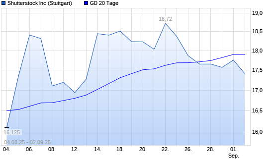 Mit dem Rücksetzer auf 17,46 EUR hat die Shutterstock-Aktie am 01.09.2025 die 20-Tage-Linie nach unten gekreuzt.