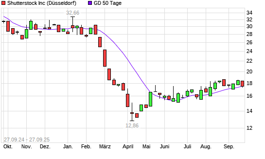 Mit dem Rücksetzer auf 17,28 EUR hat die Shutterstock-Aktie am 26.09.2025 die 50-Tage-Linie nach unten gekreuzt.