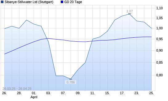Mit dem Rücksetzer auf 0,96 EUR hat die Sibanye-Stillwater-Aktie am 25.04.2025 die 20-Tage-Linie nach unten gekreuzt.