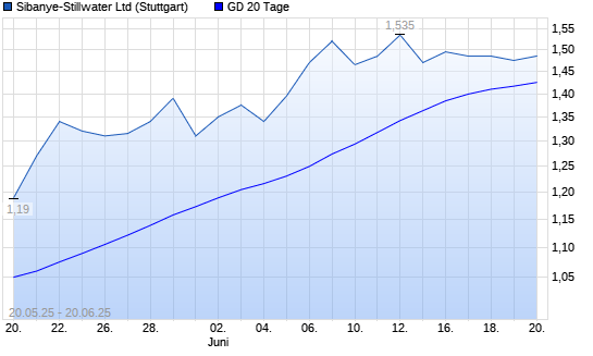 Mit dem Rücksetzer auf 1,40 EUR hat die Sibanye-Stillwater-Aktie am 19.06.2025 die 20-Tage-Linie nach unten gekreuzt.