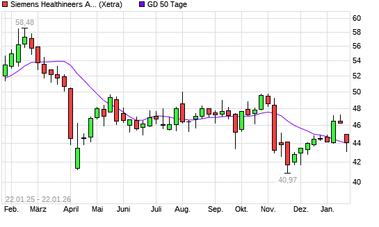 Mit dem Rücksetzer auf 43,73 EUR hat die Siemens Healthineers-Aktie am 21.01.2026 die 50-Tage-Linie nach unten gekreuzt.
