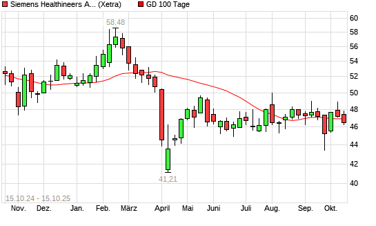 Mit dem Rücksetzer auf 46,71 EUR hat die Siemens Healthineers-Aktie am 14.10.2025 die 100-Tage-Linie nach unten gekreuzt.Die Siemens Healthineers-Aktie befindet sich seit dem 20.03.2025 ...weiterlesen