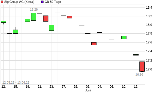 Mit dem Rücksetzer auf 17,13 EUR hat die Sig Combibloc Services-Aktie am 12.06.2025 die 50-Tage-Linie nach unten gekreuzt.