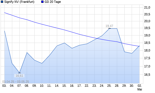 Mit dem Anstieg auf 18,92 EUR hat die Signify-Aktie am 02.05.2025 die 20-Tage-Linie nach oben gekreuzt.