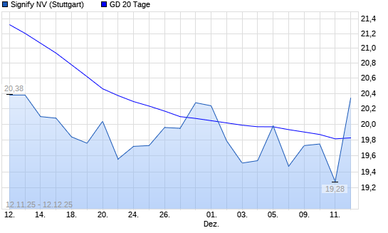 Mit dem Anstieg auf 20,44 EUR hat die Signify-Aktie am 11.12.2025 die 20-Tage-Linie nach oben gekreuzt.