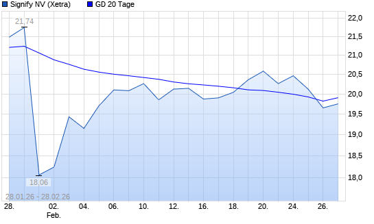 Mit dem Anstieg auf 19,87 EUR hat die Signify-Aktie am 27.02.2026 die 20-Tage-Linie nach oben gekreuzt.