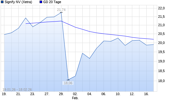 Mit dem Rücksetzer auf 19,89 EUR hat die Signify-Aktie am 17.02.2026 die 20-Tage-Linie nach unten gekreuzt.