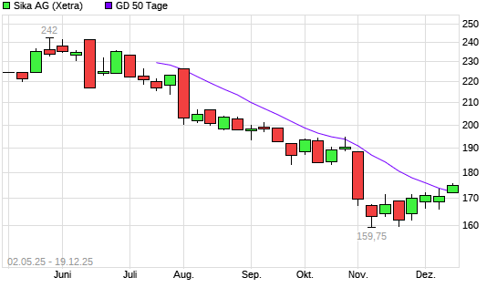 Mit dem Anstieg auf 175,40 EUR hat die Sika-Aktie am 18.12.2025 die 50-Tage-Linie nach oben gekreuzt.