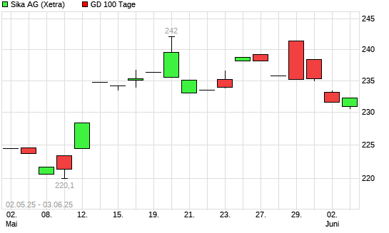 Mit dem Rücksetzer auf 231,10 EUR hat die Sika-Aktie am 02.06.2025 die 100-Tage-Linie nach unten gekreuzt.
