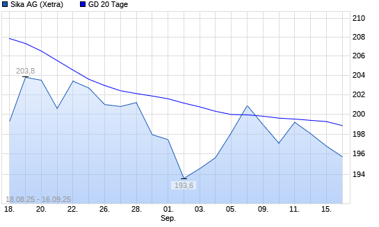 Mit dem Rücksetzer auf 196,35 EUR hat die Sika-Aktie am 15.09.2025 die 20-Tage-Linie nach unten gekreuzt.