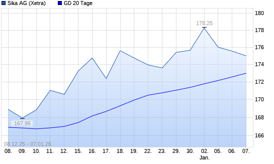 Mit dem Rücksetzer auf 173,45 EUR hat die Sika-Aktie am 06.01.2026 die 20-Tage-Linie nach unten gekreuzt.