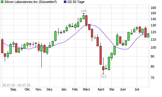 Mit dem Anstieg auf 118,00 EUR hat die Silicon Labs-Aktie am 29.07.2025 die 50-Tage-Linie nach oben gekreuzt.