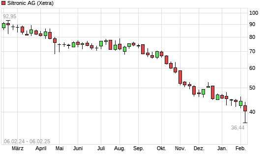 Mit dem Rücksetzer auf 39,90 EUR hat die Siltronic-Aktie (ISIN DE000WAF3001) am 05.02.2025 ein neues 5-Jahres-Tief erreicht und damit den Kurs vom 04.02.2025 eingestellt.