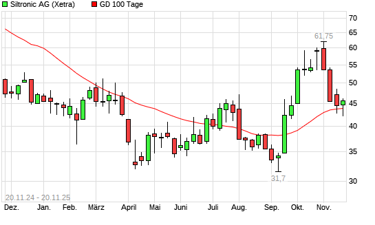 Mit dem Anstieg auf 44,54 EUR hat die Siltronic-Aktie am 19.11.2025 die 100-Tage-Linie nach oben gekreuzt.