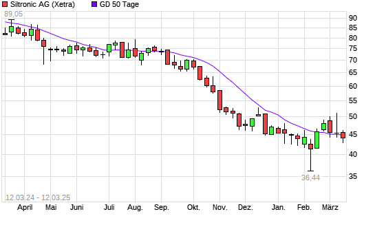 Mit dem Rücksetzer auf 44,10 EUR hat die Siltronic-Aktie am 11.03.2025 die 50-Tage-Linie nach unten gekreuzt.