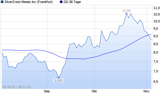 Mit dem Rücksetzer auf 8,98 EUR hat die SilverCrest Metals-Aktie am 04.11.2024 die 38-Tage-Linie nach unten gekreuzt.