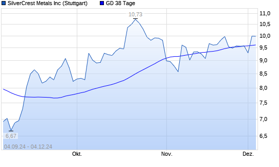 Mit dem Rücksetzer auf 9,39 EUR hat die SilverCrest Metals-Aktie am 03.12.2024 die 38-Tage-Linie nach unten gekreuzt.