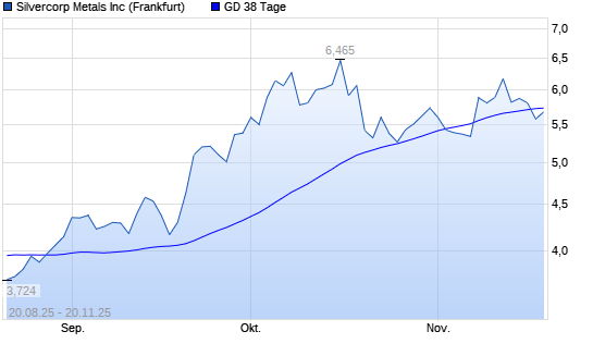 Mit dem Rücksetzer auf 5,58 EUR hat die Silvercorp Metals-Aktie am 19.11.2025 die 38-Tage-Linie nach unten gekreuzt.
