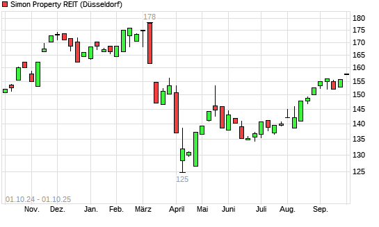 Mit dem Anstieg auf 157,70 EUR hat die Simon Property-Aktie (ISIN US8288061091) am 30.09.2025 ein neues 6-Monats-Hoch erreicht und damit den Kurs vom 29.09.2025 eingestellt.