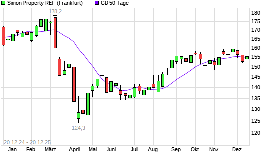 Mit dem Anstieg auf 155,35 EUR hat die Simon Property-Aktie am 19.12.2025 die 50-Tage-Linie nach oben gekreuzt.