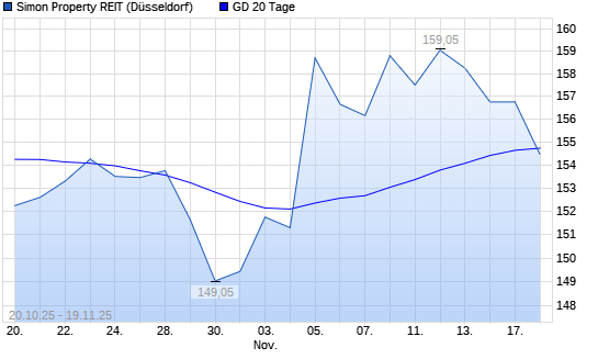 Mit dem Rücksetzer auf 154,95 EUR hat die Simon Property-Aktie am 18.11.2025 die 20-Tage-Linie nach unten gekreuzt.