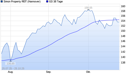 Mit dem Rücksetzer auf 153,25 EUR hat die Simon Property-Aktie am 24.10.2025 die 38-Tage-Linie nach unten gekreuzt.