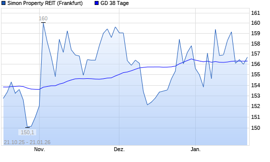 Mit dem Rücksetzer auf 156,00 EUR hat die Simon Property-Aktie am 20.01.2026 die 38-Tage-Linie nach unten gekreuzt.