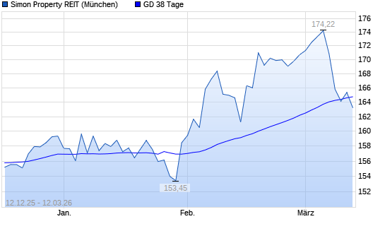 Mit dem Rücksetzer auf 162,50 EUR hat die Simon Property-Aktie am 11.03.2026 die 38-Tage-Linie nach unten gekreuzt.