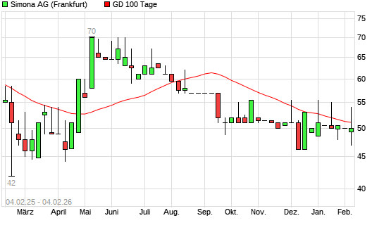 Mit dem Anstieg auf 54,00 EUR hat die Simona-Aktie am 03.02.2026 die 100-Tage-Linie nach oben gekreuzt.