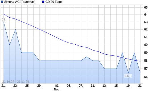 Mit dem Anstieg auf 59,00 EUR hat die Simona-Aktie am 20.11.2024 die 20-Tage-Linie nach oben gekreuzt.