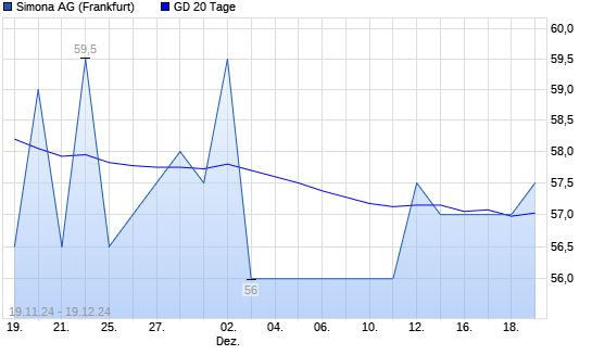 Mit dem Anstieg auf 57,00 EUR hat die Simona-Aktie am 18.12.2024 die 20-Tage-Linie nach oben gekreuzt.