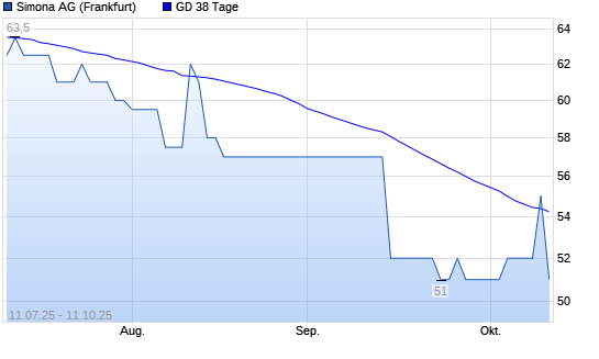 Mit dem Rücksetzer auf 51,00 EUR hat die Simona-Aktie am 10.10.2025 die 38-Tage-Linie nach unten gekreuzt.
