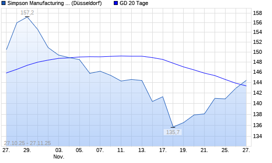 Mit dem Anstieg auf 145,10 EUR hat die Simpson Manufacturing Company-Aktie am 26.11.2025 die 20-Tage-Linie nach oben gekreuzt.