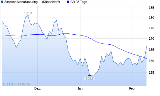 Mit dem Anstieg auf 161,60 EUR hat die Simpson Manufacturing Company-Aktie am 10.02.2025 die 38-Tage-Linie nach oben gekreuzt.