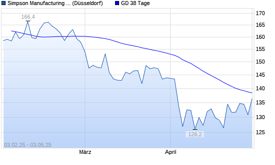 Mit dem Anstieg auf 138,60 EUR hat die Simpson Manufacturing Company-Aktie am 02.05.2025 die 38-Tage-Linie nach oben gekreuzt.