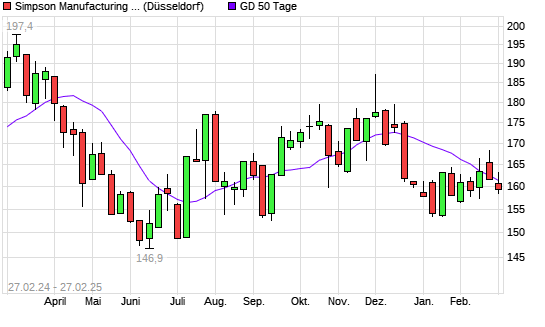 Mit dem Rücksetzer auf 160,50 EUR hat die Simpson Manufacturing Company-Aktie am 26.02.2025 die 50-Tage-Linie nach unten gekreuzt.