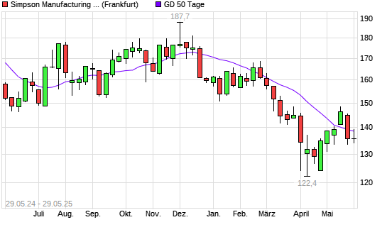 Mit dem Rücksetzer auf 135,30 EUR hat die Simpson Manufacturing Company-Aktie am 28.05.2025 die 50-Tage-Linie nach unten gekreuzt.