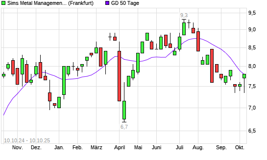 Mit dem Anstieg auf 7,80 EUR hat die Sims Metal Management-Aktie am 09.10.2025 die 50-Tage-Linie nach oben gekreuzt.