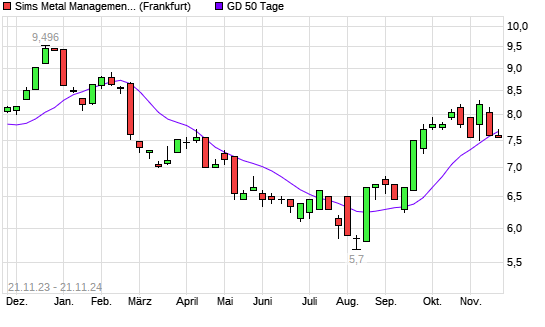 Mit dem Rücksetzer auf 7,55 EUR hat die Sims Metal Management-Aktie am 20.11.2024 die 50-Tage-Linie nach unten gekreuzt.