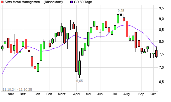 Mit dem Rücksetzer auf 7,65 EUR hat die Sims Metal Management-Aktie am 10.10.2025 die 50-Tage-Linie nach unten gekreuzt.