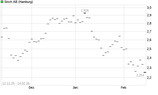 Mit dem Rücksetzer auf 2,21 EUR hat die Sinch-Aktie (ISIN SE0016101844) am 13.02.2026 ein neues 6-Monats-Tief erreicht und damit den Kurs vom 09.02.2026 eingestellt.