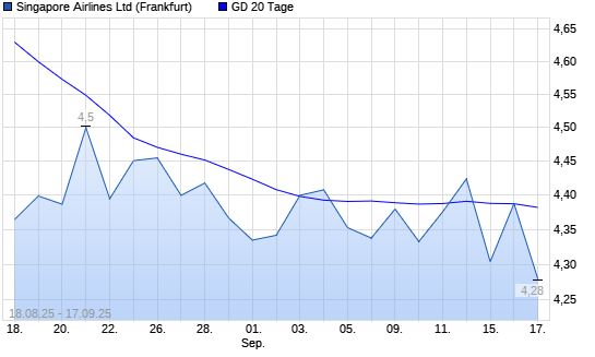 Mit dem Anstieg auf 4,39 EUR hat die Singapore Airlines-Aktie am 16.09.2025 die 20-Tage-Linie nach oben gekreuzt.