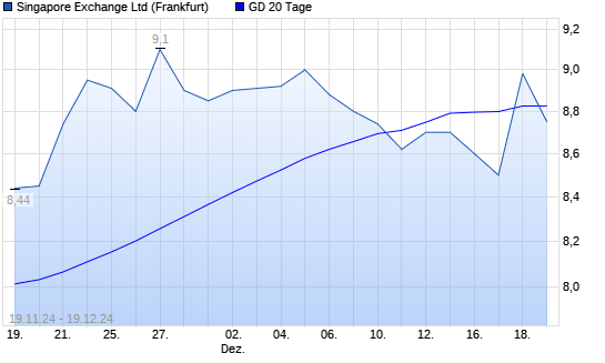 Mit dem Anstieg auf 8,98 EUR hat die Singapore Exchange-Aktie am 18.12.2024 die 20-Tage-Linie nach oben gekreuzt.