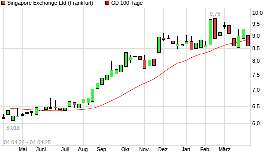 Mit dem Rücksetzer auf 8,88 EUR hat die Singapore Exchange-Aktie am 03.04.2025 die 100-Tage-Linie nach unten gekreuzt.