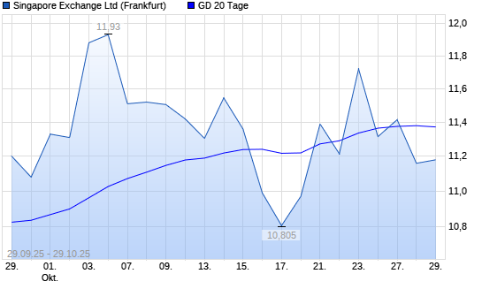 Mit dem Rücksetzer auf 11,16 EUR hat die Singapore Exchange-Aktie am 28.10.2025 die 20-Tage-Linie nach unten gekreuzt.