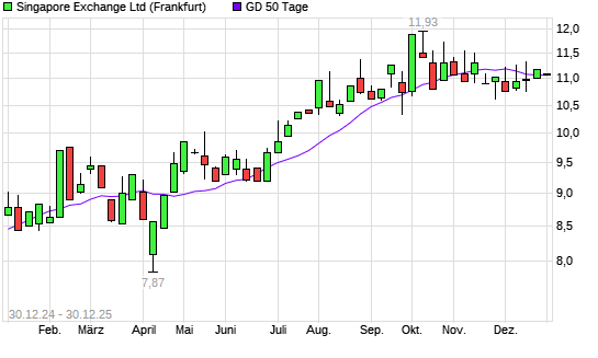 Mit dem Rücksetzer auf 11,08 EUR hat die Singapore Exchange-Aktie am 29.12.2025 die 50-Tage-Linie nach unten gekreuzt.