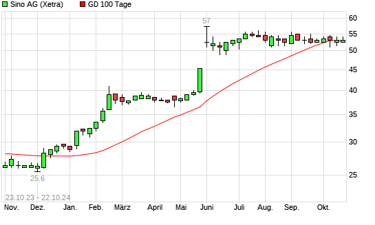 Mit dem Rücksetzer auf 52,00 EUR hat die Sino-Aktie am 21.10.2024 die 100-Tage-Linie nach unten gekreuzt.